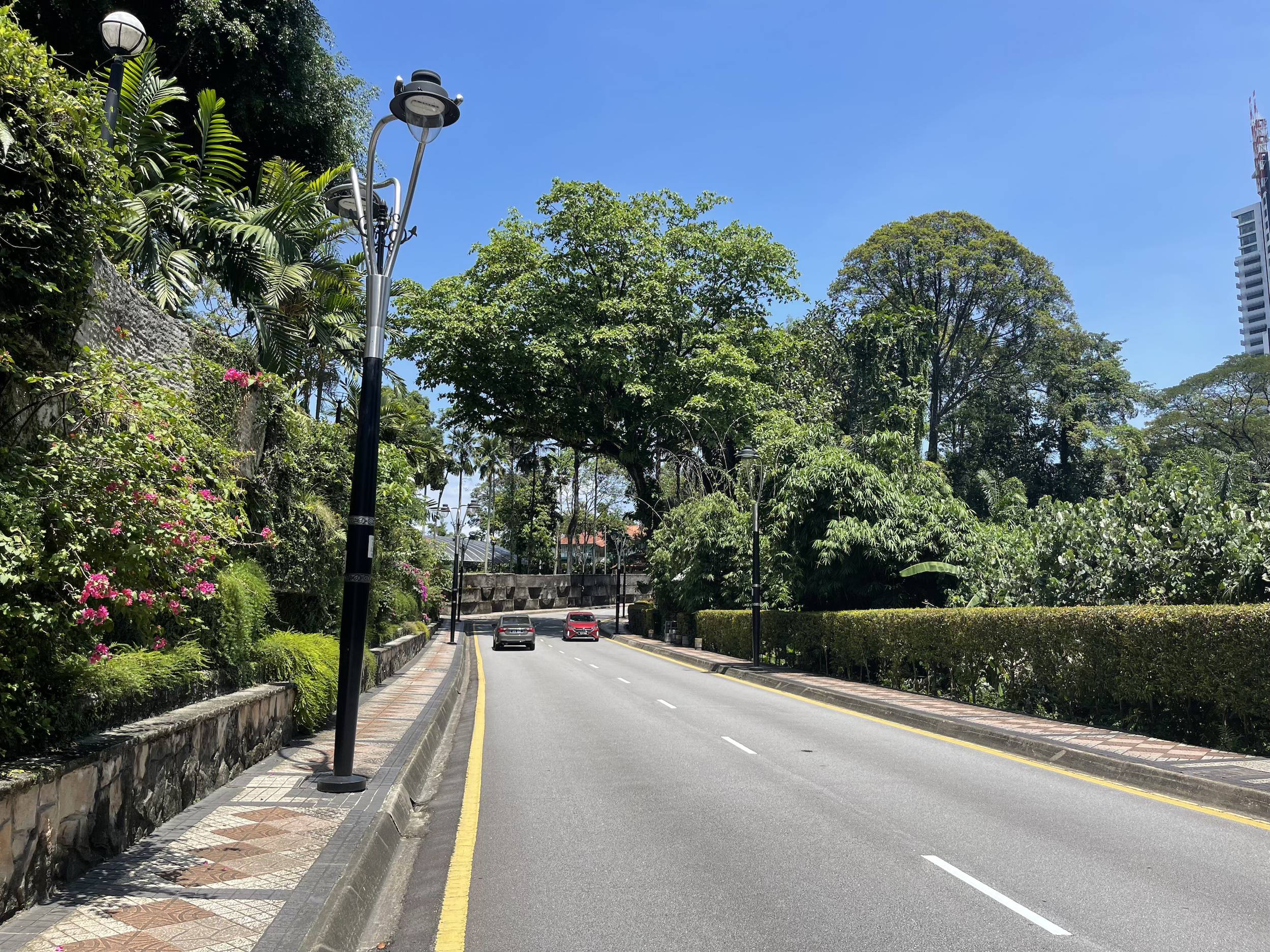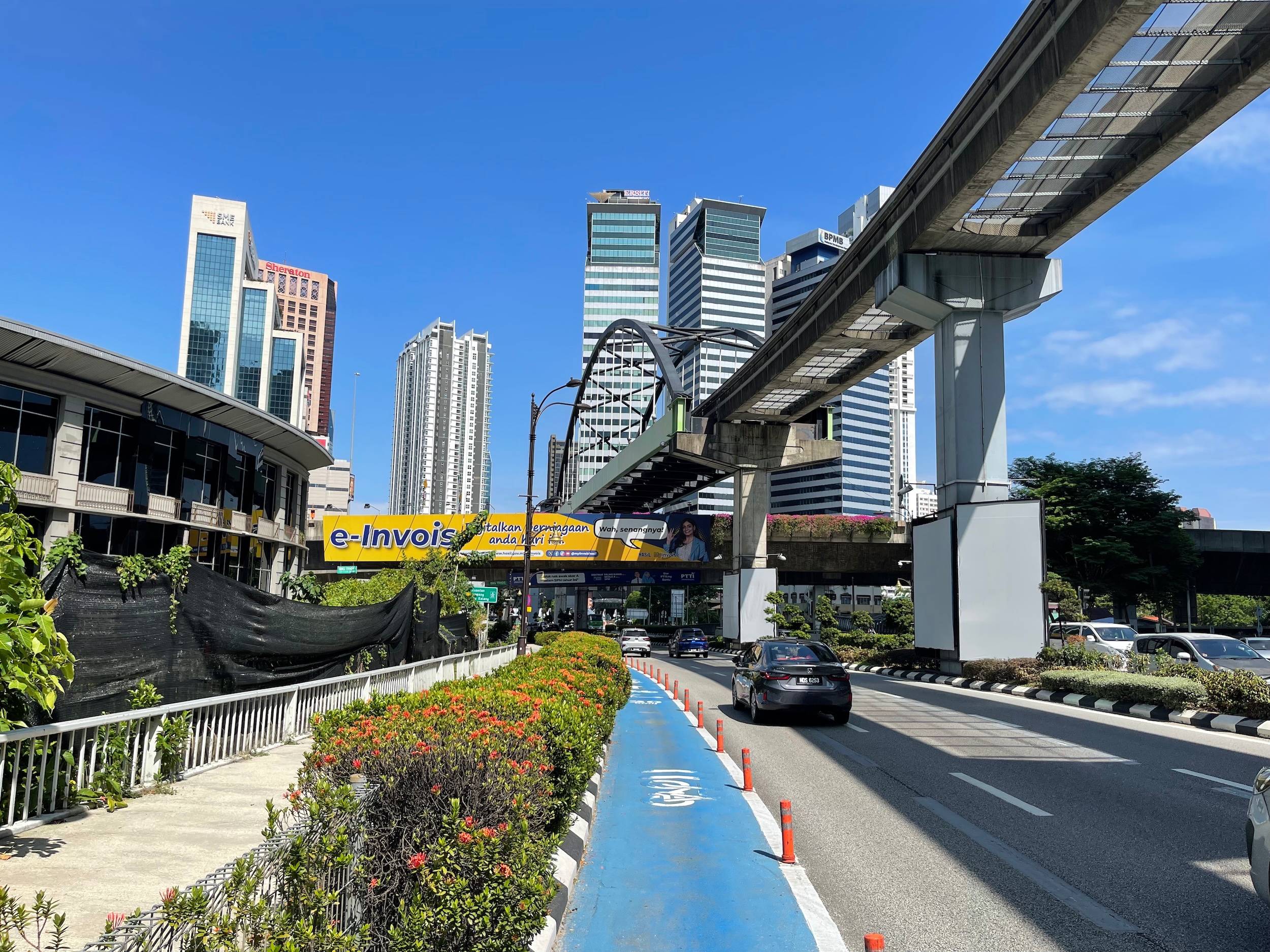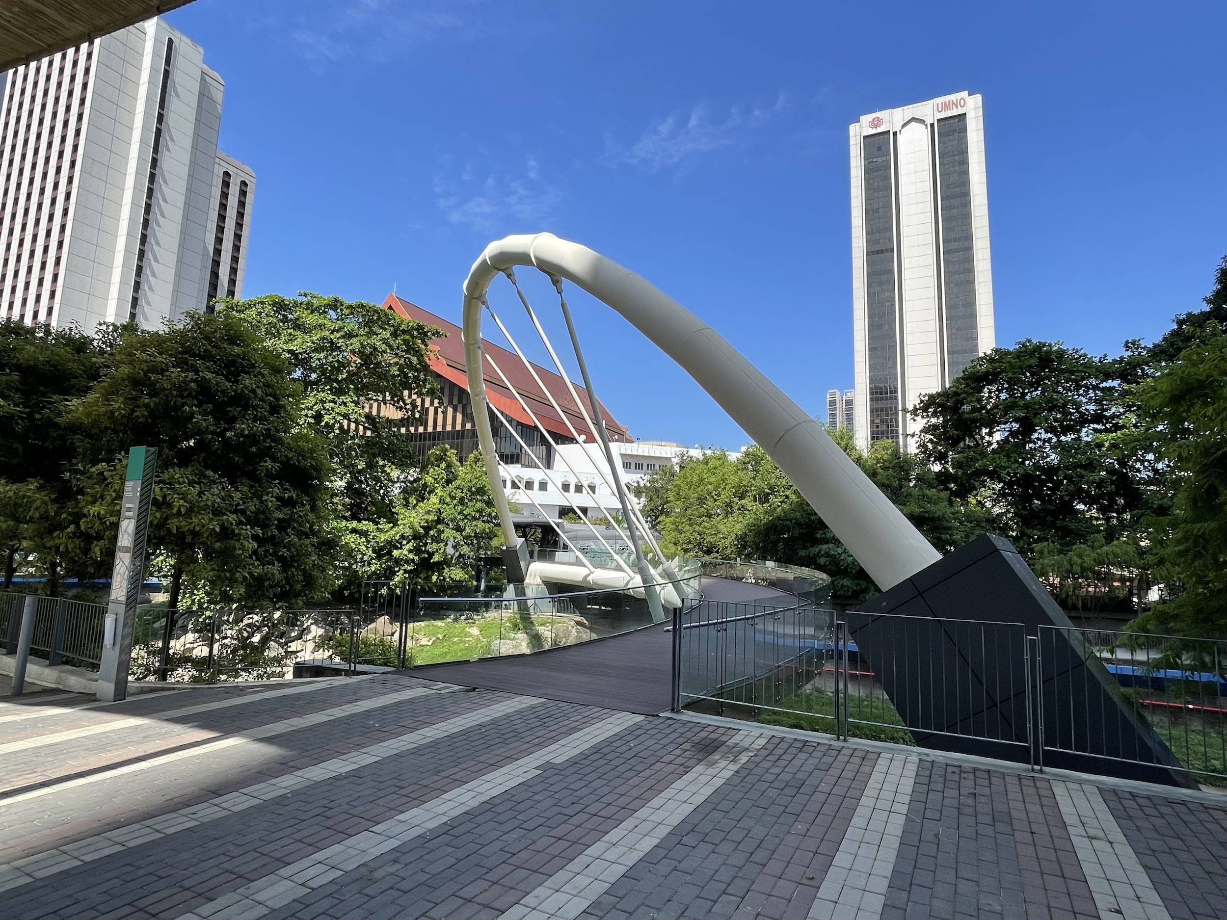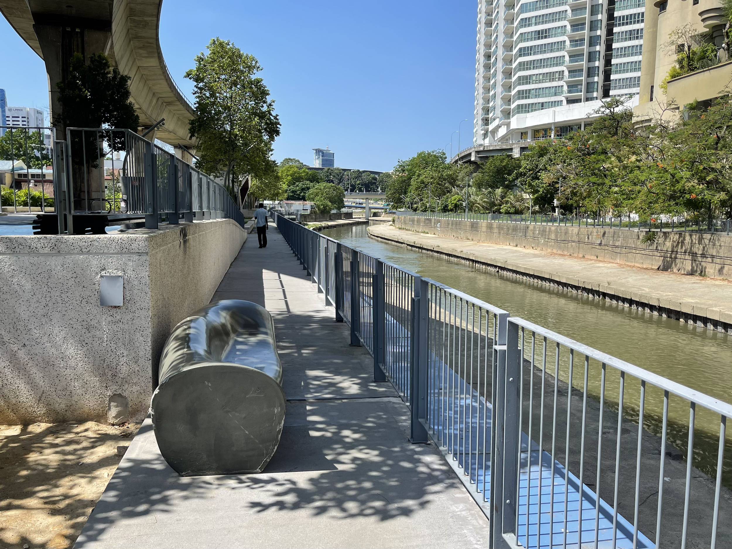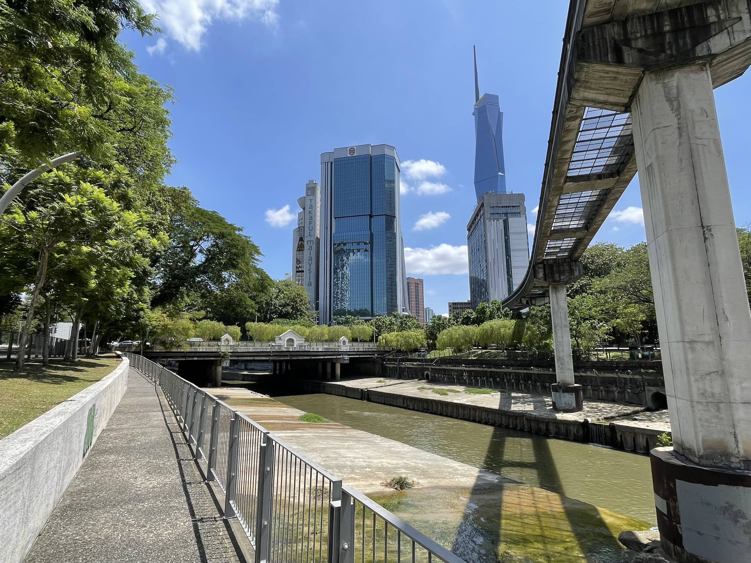 This morning, Friday, I went for a bike ride passing by the Petronas Towers, the Perdana Botanical Gardens, and I followed a cycling path along the Klang River. The bike path along the river was pleasant. The city is modern and clean, but I did not find the same food culture as in Bangkok, where small stalls selling all kinds of dishes can be found throughout the city.