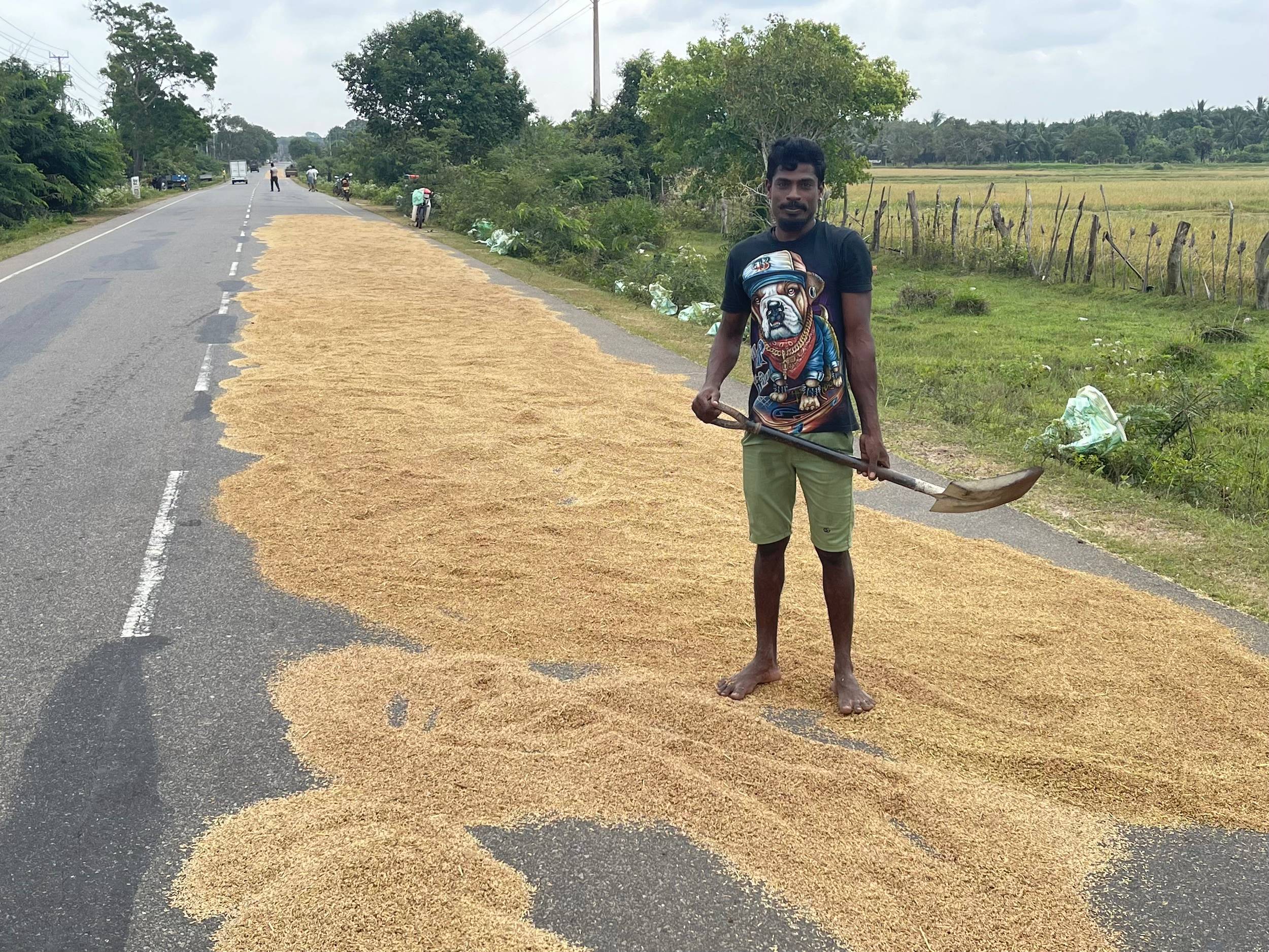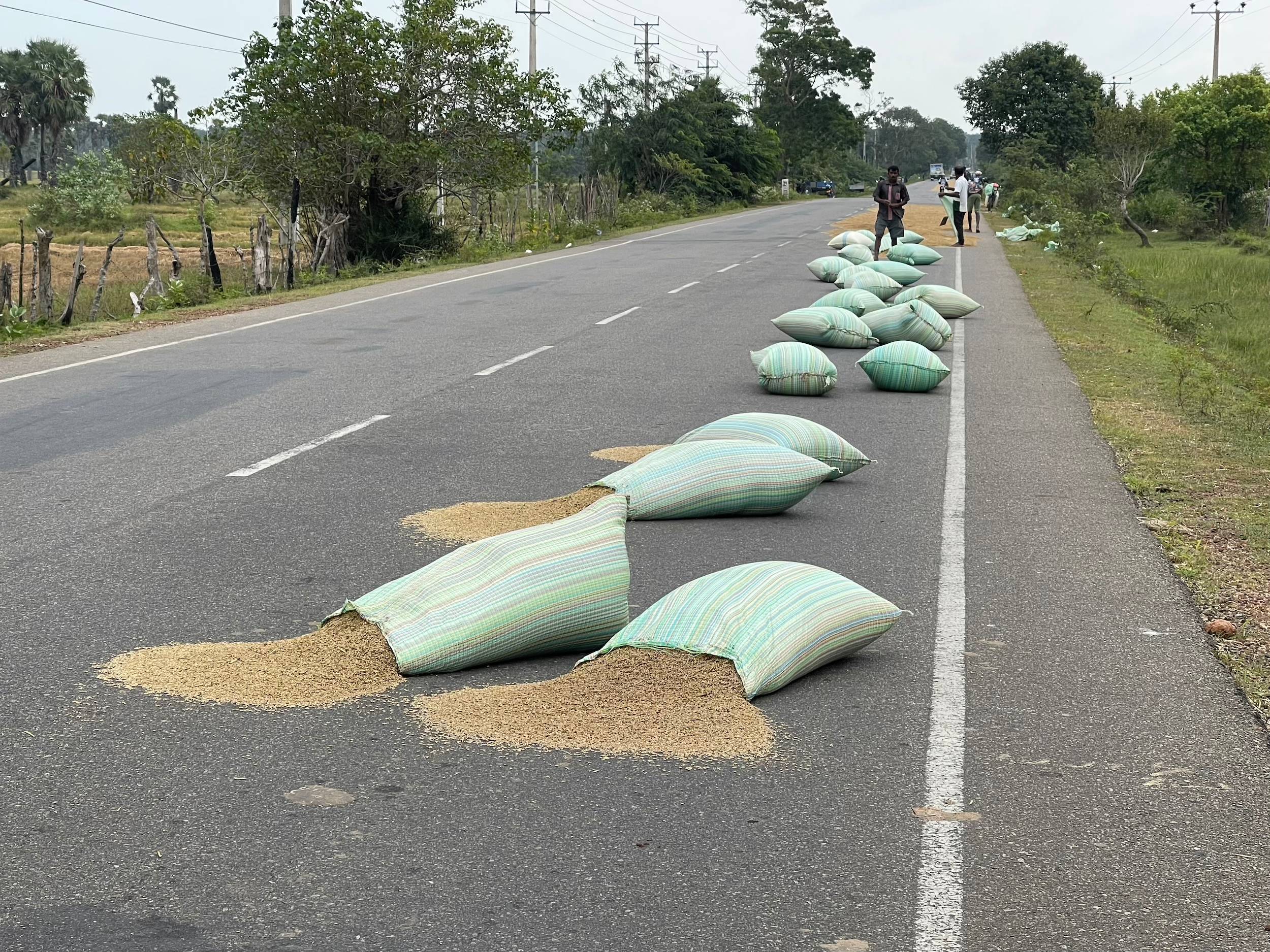 J’avais largement dépassé Elephant Pass quand je me suis arrêté pour manger. Le service du petit-déjeuner ne commençait qu’à 7h30, à l’hôtel, alors que j’étais déjà prêt à partir à 7h ; je suis donc parti sans attendre. J’ai repéré un endroit au bord de la route, idéal pour laisser le vélo quelques minutes. C’est en dégustant un paratha à 25 cents, un prix imbattable, que le fameux cycliste est arrivé. Il s’était arrêté en chemin et m’avait vu passer. C’est un homme de 76 ans, en est à son deuxième voyage à vélo au Sri Lanka, et il prévoit de voyager pendant trois mois. Il y aurait aussi un Japonais qui parcourt la région à vélo. Ma route bifurquait à peine deux kilomètres plus loin et nous nous sommes quittés là.