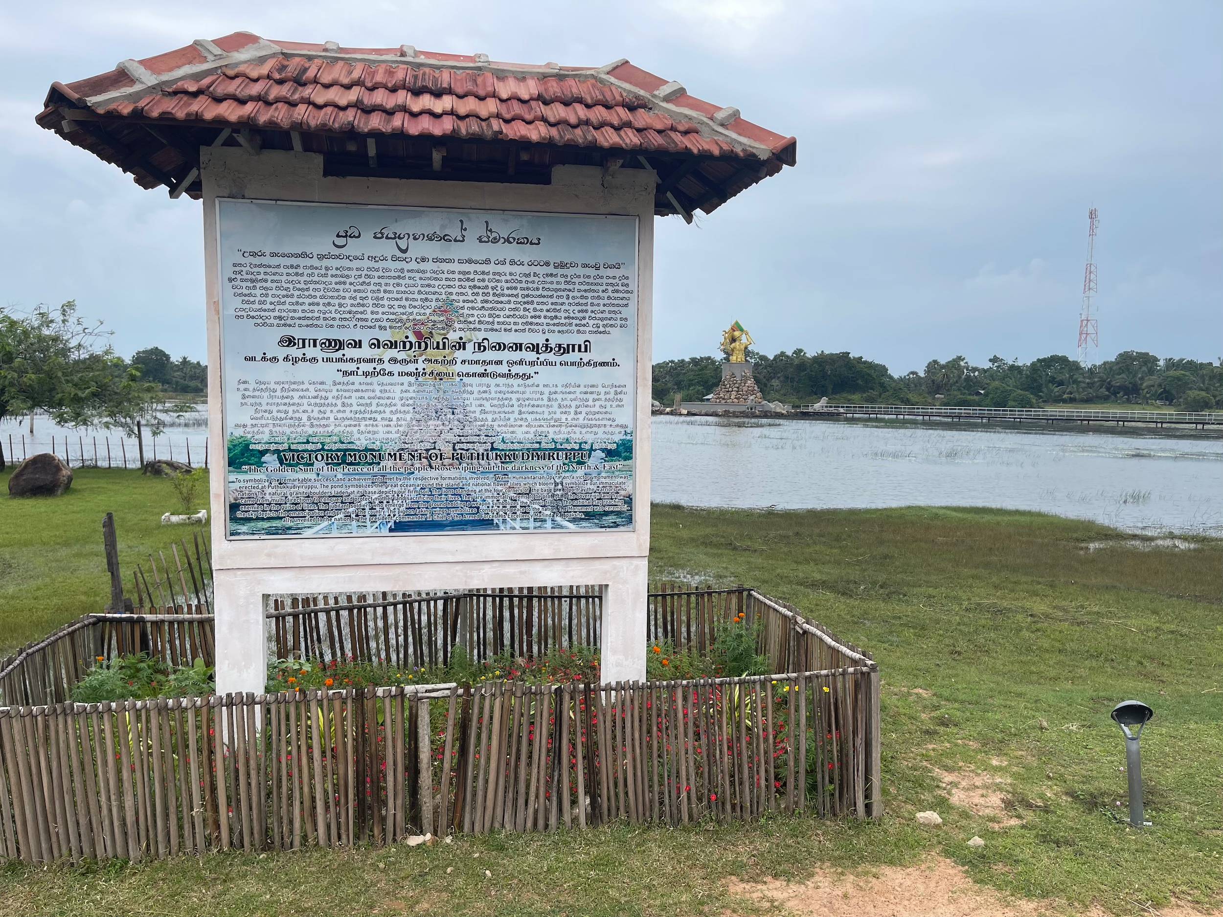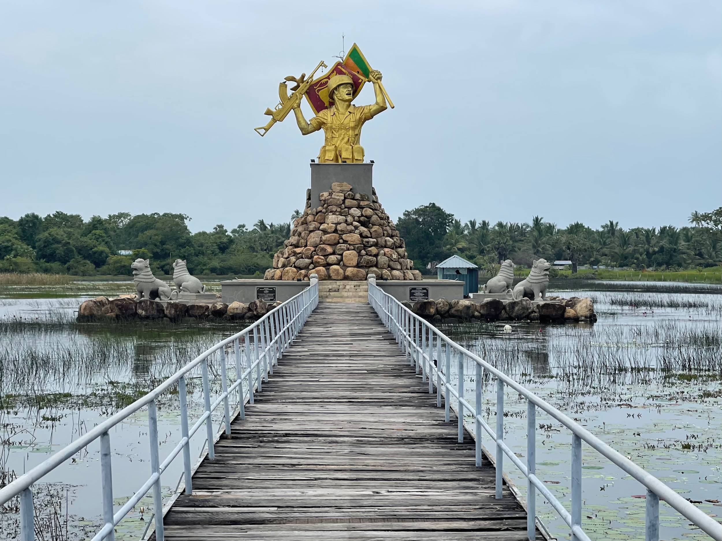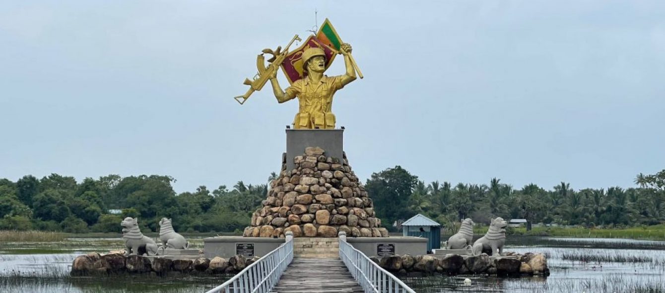 Juste avant d’arriver à Mullaitivu, on aperçoit un grand monument érigé en symbole de la victoire de l’armée cinghalaise sur le groupe armé LTTE (les Tigres de libération de l’Eelam tamoul), qui cherchait à créer un État indépendant dans le nord. Le conflit a duré 33 ans et a coûté la vie à au moins 80 000 personnes. Il s’est terminé en 2009 par une offensive majeure de l’armée cinghalaise à Mullaitivu.