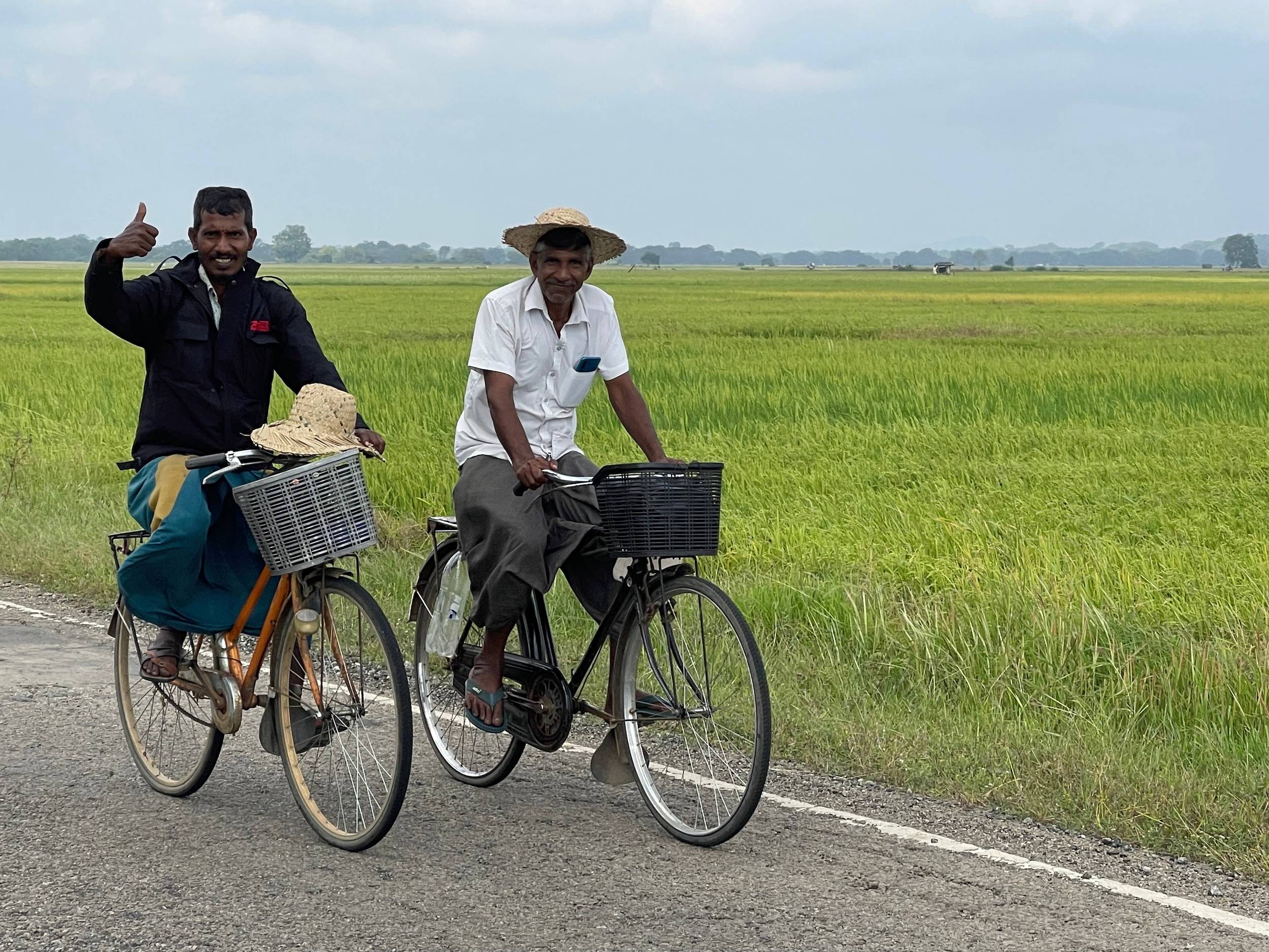 In the rush to turn back, I’d folded the Brompton and removed the trailer wheels. In the rickshaw, disaster: a simple but crucial rubber piece, the one that spaces the wheel from the trailer, had vanished. Without it, rubbing was inevitable. I scanned the vehicle floor, then figured it might have fallen in the village. Lucky break: the driver parked in exactly the same spot. As I got out, I spotted my little rubber bit on the ground. Phew, problem solved.