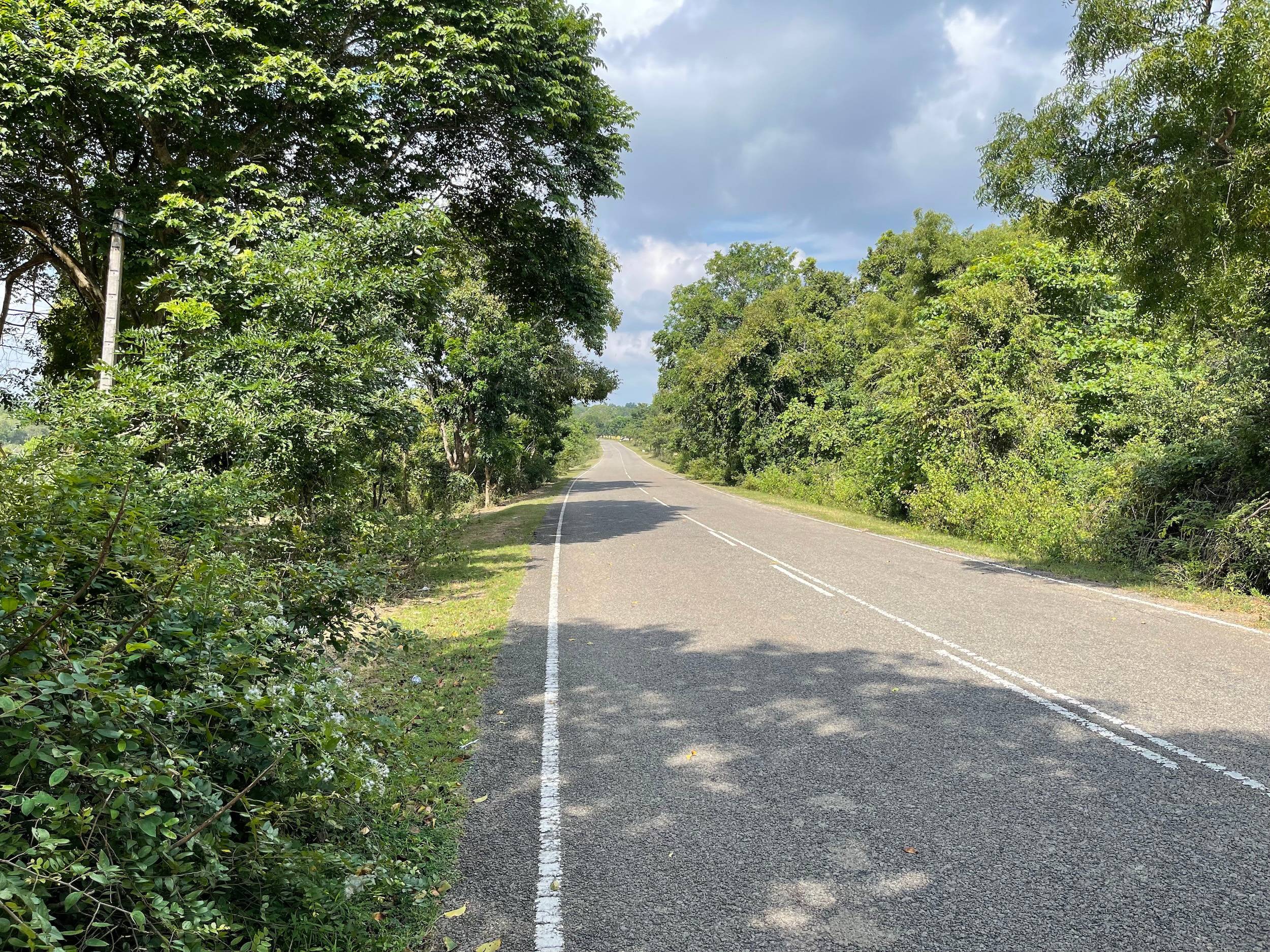 Right out of Pottuvil, the road surface deteriorates quickly. Little traffic, and since the route cuts through two national parks, no villages in sight. I’d brought 2.5 litres of water, hoping it would be enough. Still no wild elephants, alas.