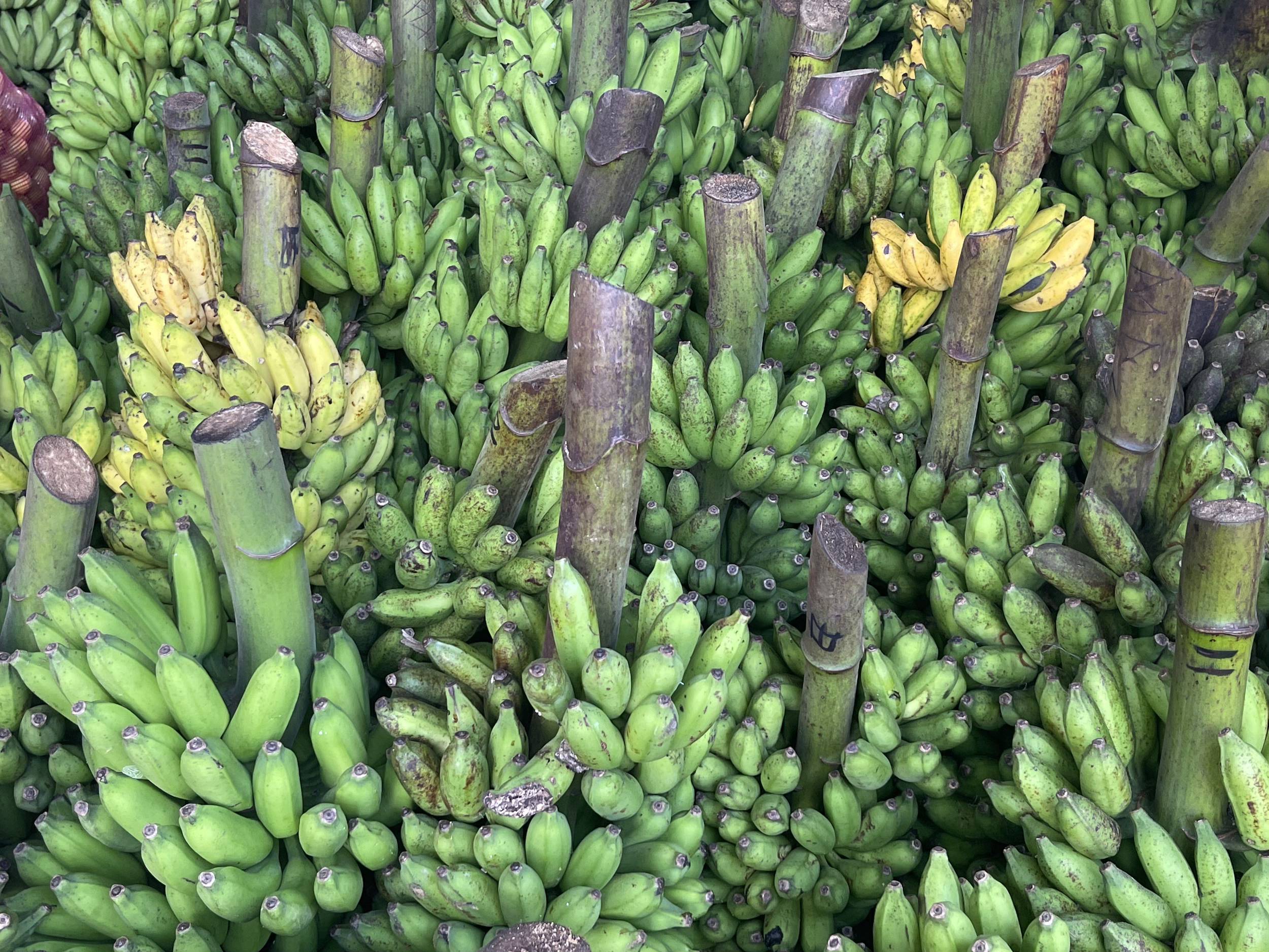 A few hundred metres further, coconuts caught my eye. A smiling man approached. After hours of ups and downs, thirst was gnawing at me. Recently married, he’d settled in his wife’s region and just opened his stall. His English was solid; we chatted effortlessly. He radiated kindness. Without me asking, he handed me juicy watermelon slices and a banana. Bananas are hugely popular here.