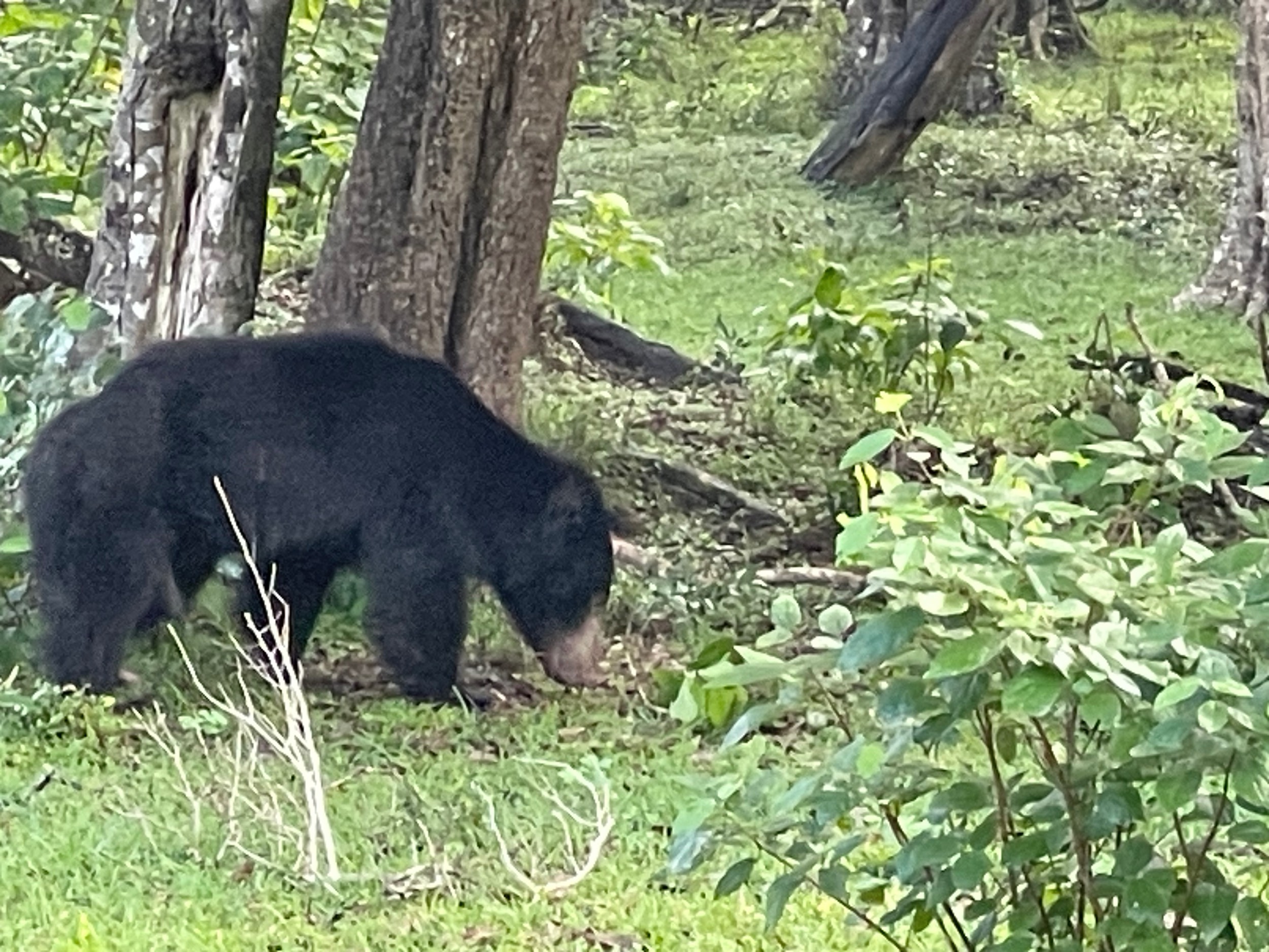 At the start of the safari, many jeeps were driving one behind the other, but as time went on, the traffic thinned out as the vehicles spread across the park. I was particularly hoping to see elephants, but only came across traces of their presence. That said, I was able to see a wide variety of wildlife, including spotted deers, a sloth bear, eagles, peacocks, a stork, and a few crocodiles, among others.