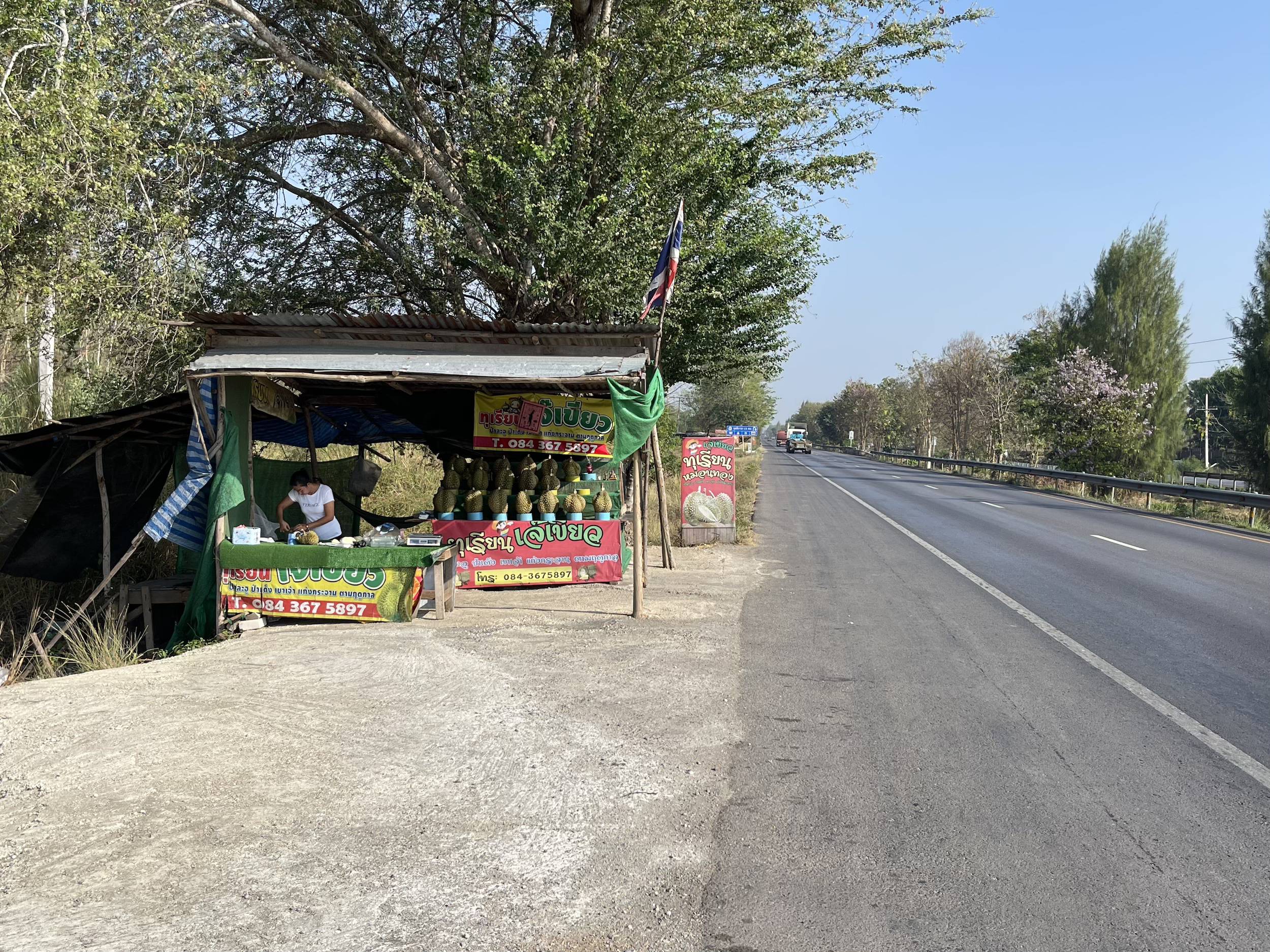 - Il y avait plusieurs vendeurs de durian sur le bord de cette route
