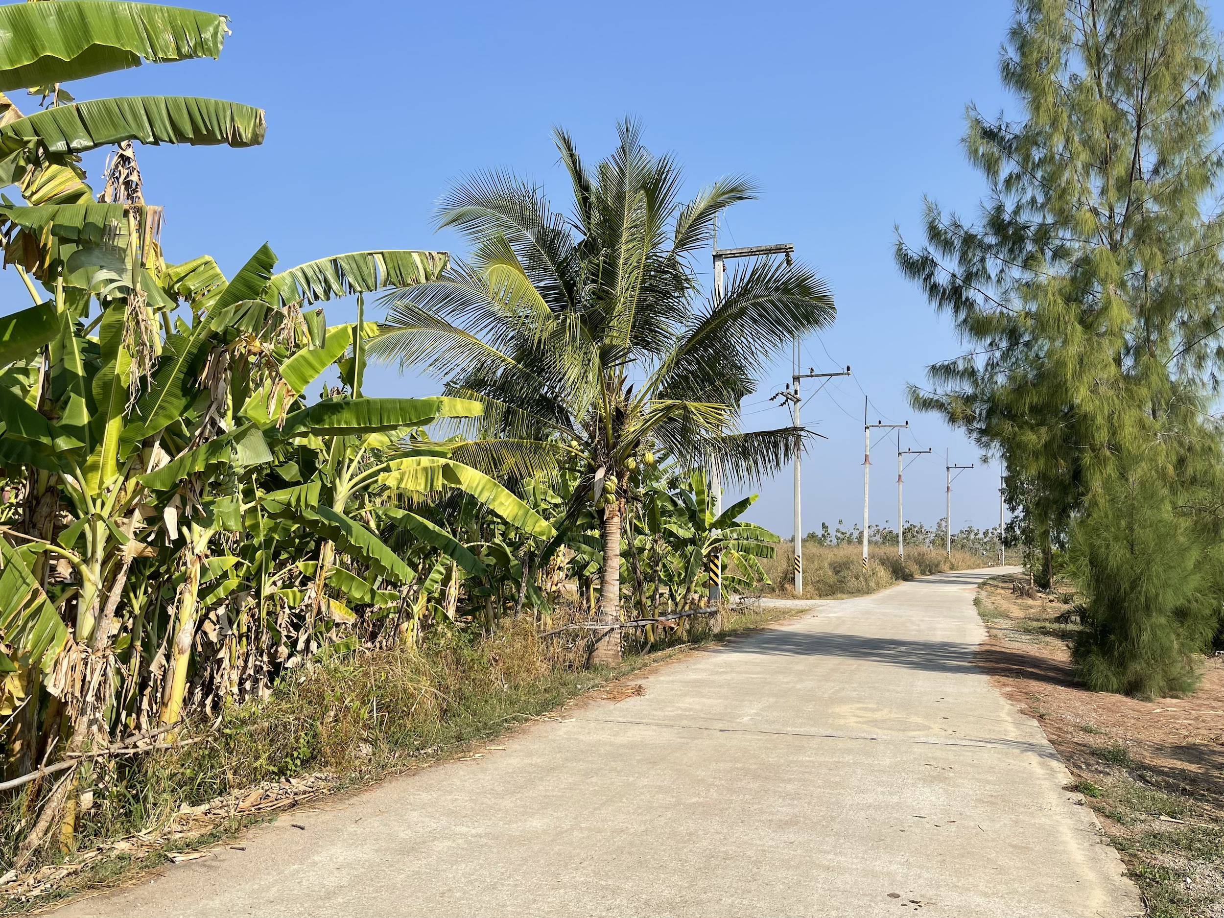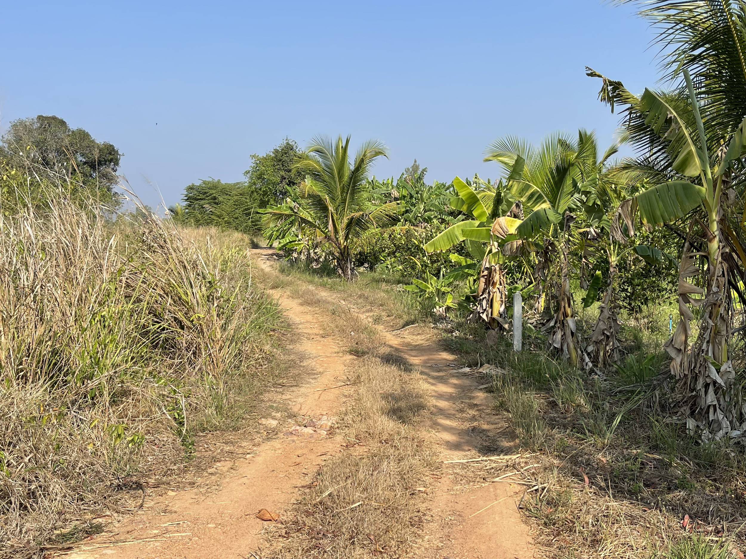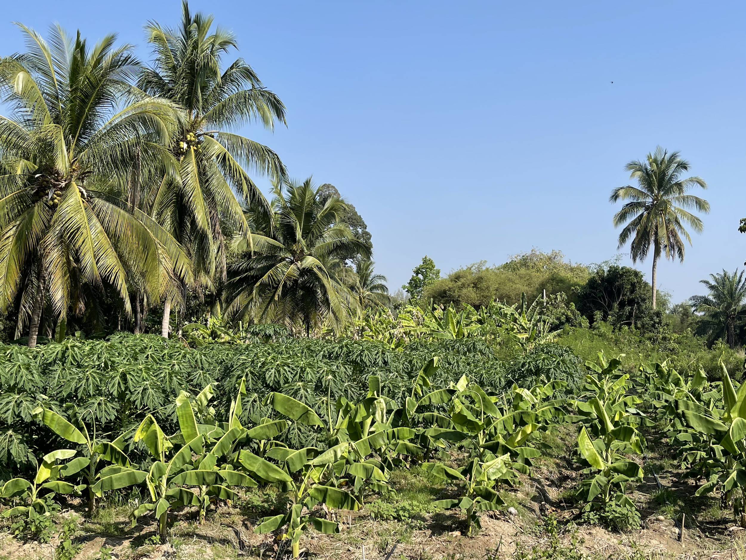 I took two bike rides into the countryside during my stay. I saw sugarcane fields and, above all, many pineapple fields. I also spotted a few mango trees, banana plants, and jackfruit trees, but no vineyards.